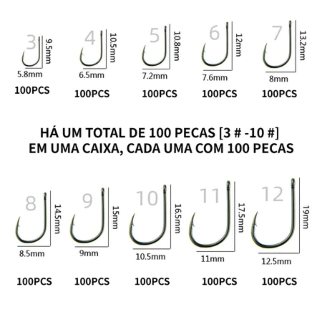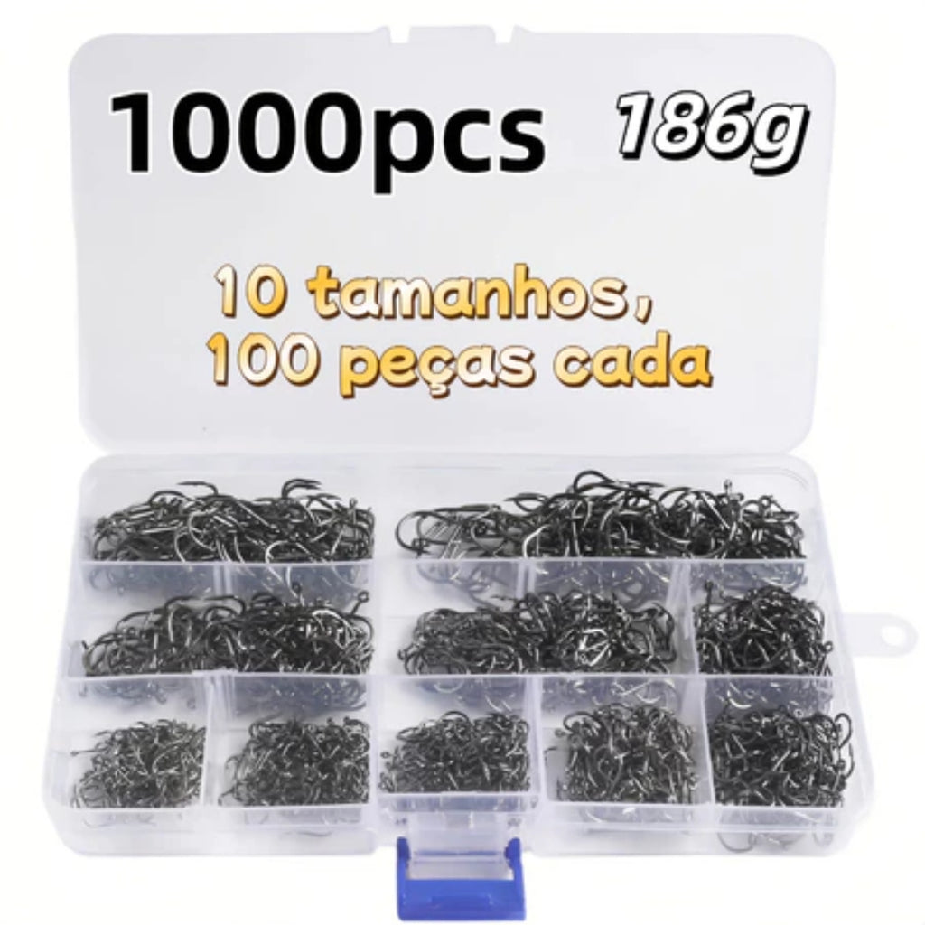 Kit com 1000 Anzóis de Pesca em Aço Carbono